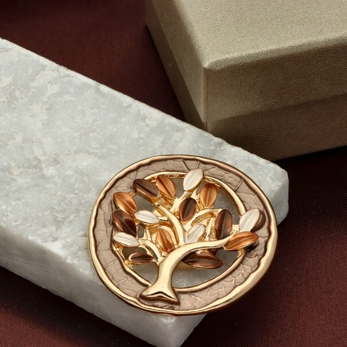 Wyjątkowa broszka z kolekcji YVON to połączenie artystycznego designu i praktycznej formy. Wykonana z hipoalergicznego metalu i zdobiona ręcznie nanoszoną emalią, zachwyca subtelnym blaskiem oraz dopracowanymi detalami. Motyw drzewa życia w odcieniach złota, miedzi i szampańskiego beżu nadaje jej ponadczasowej elegancji.