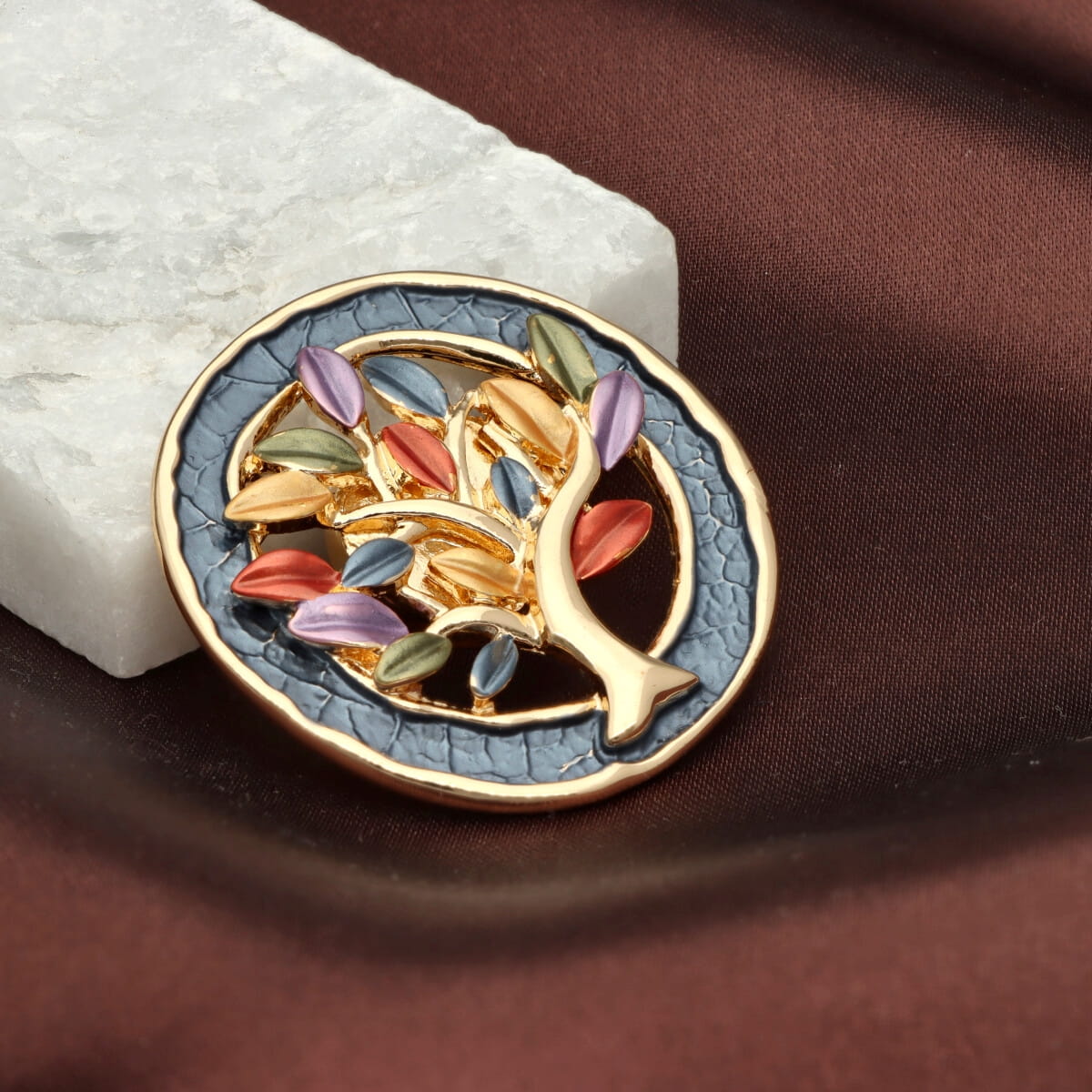 Wyjątkowa broszka z kolekcji YVON to połączenie artystycznego designu i praktycznej formy. Wykonana z hipoalergicznego metalu i zdobiona ręcznie nanoszoną emalią, zachwyca subtelnym blaskiem oraz dopracowanymi detalami. Motyw drzewa życia w odcieniach złota, miedzi i szampańskiego beżu nadaje jej ponadczasowej elegancji.