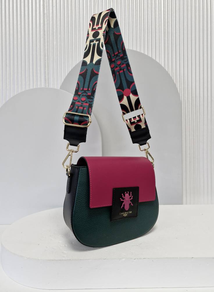 Ego INSECTA szmaragd/fuksja /czarna skóra naturalna