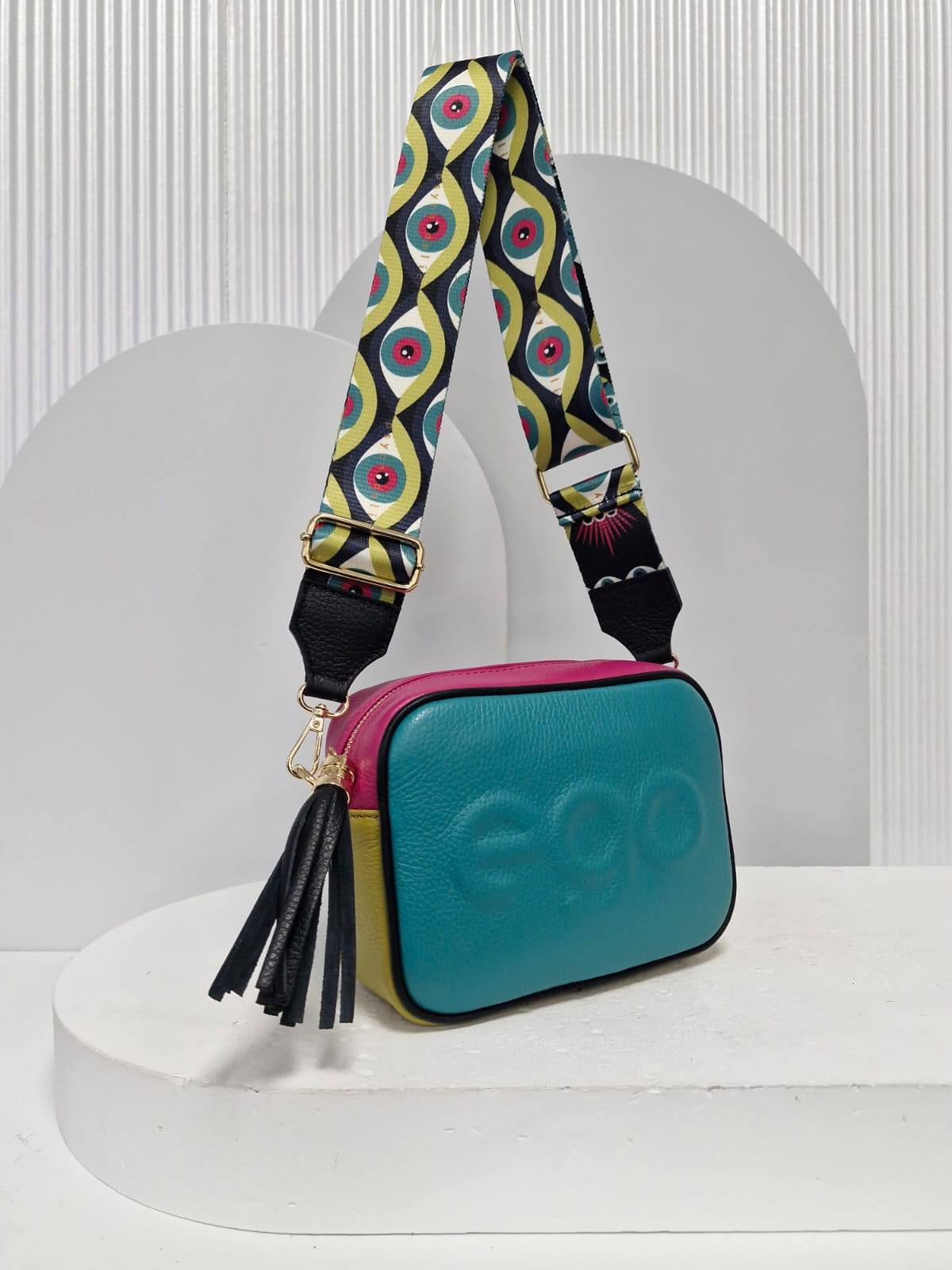 Ego cegiełka skóra naturalna turkus/fuksja /awokado