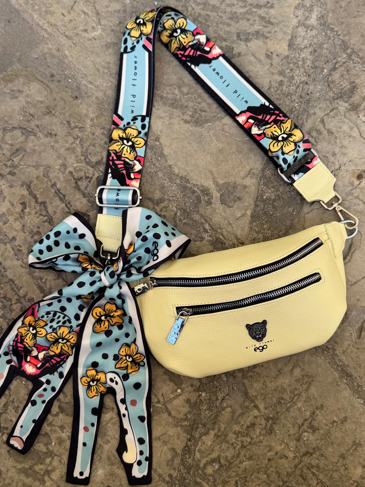 Dodatkowym elementem jest apaszka EGO, którą można nosić na wiele sposobów – przy torebce, na pasku lub jako osobny dodatek do stylizacji.