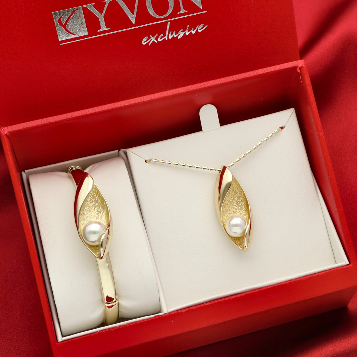Ekskluzywny komplet biżuterii YVON Exclusive – złoto i perła shell w luksusowej oprawie