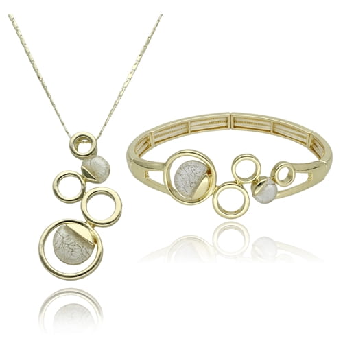 Biżuteria wykonana jest z hipoalergicznego stopu cynku (zamak) oraz trwałej żywicy, której struktura pięknie imituje delikatną mozaikę o perłowym wykończeniu. Szlachetna, złota oprawa i starannie polerowane elementy dodają całości luksusowego charakteru, pozostając jednocześnie lekkimi i komfortowymi w noszeniu.