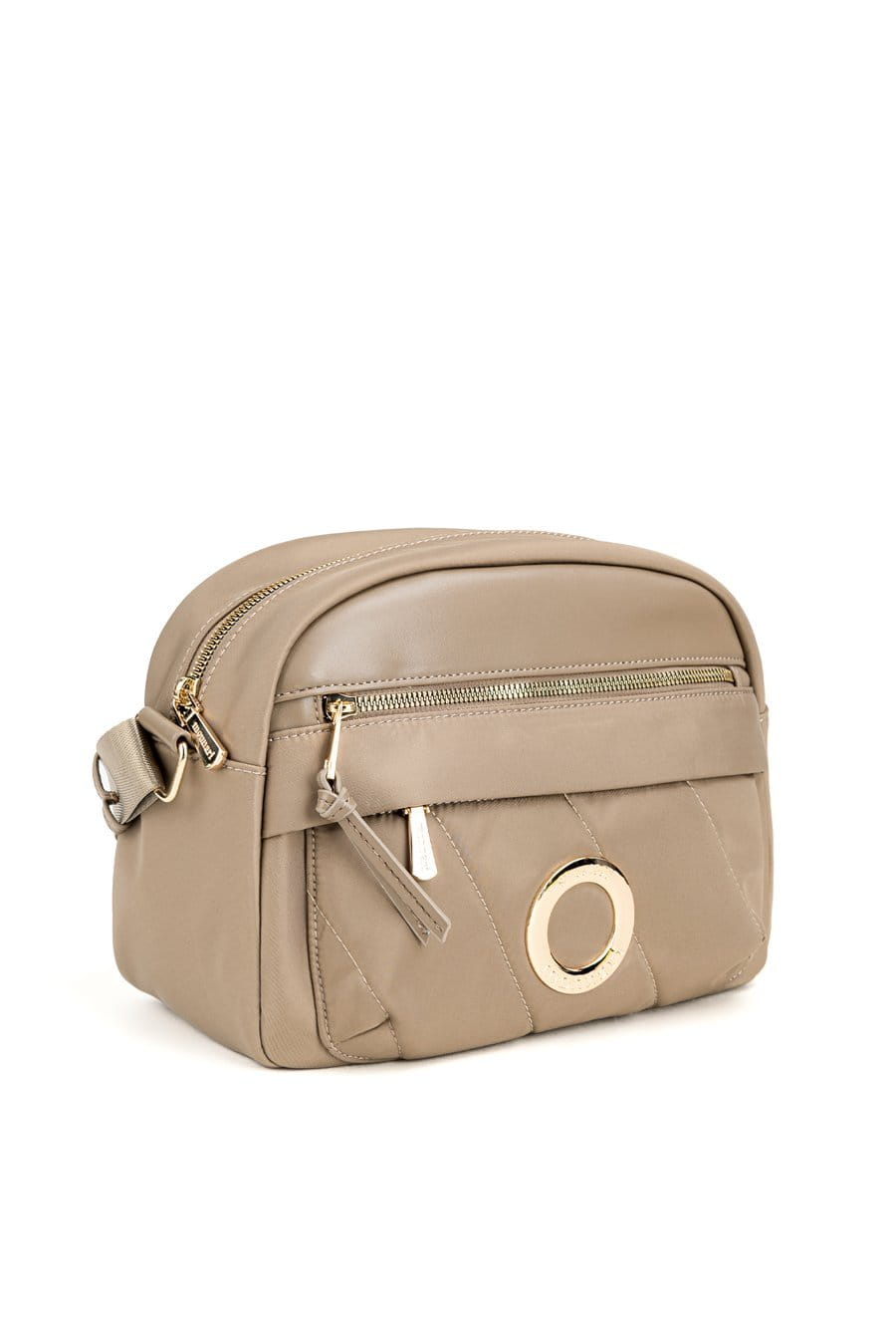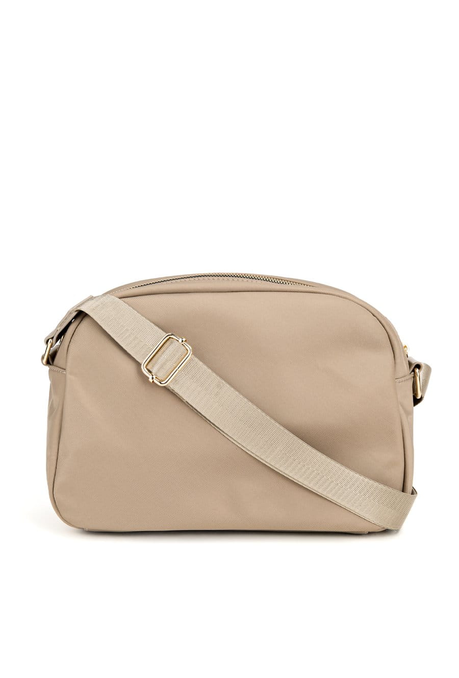 Przemyślana organizacja – wnętrze jednokomorowej torebki wykończono jasną, logowaną podszewką, a dodatkowe dwie kieszonki otwarte i jedna zapinana na suwak pozwalają wygodnie uporządkować drobiazgi.