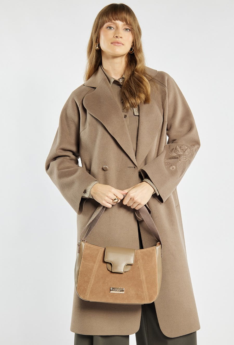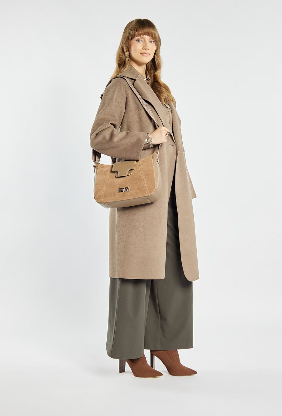 ✅ Ponadczasowy design – połączenie materiału z eleganckimi wstawkami i złotymi detalami nadaje torebce wyjątkowego charakteru.