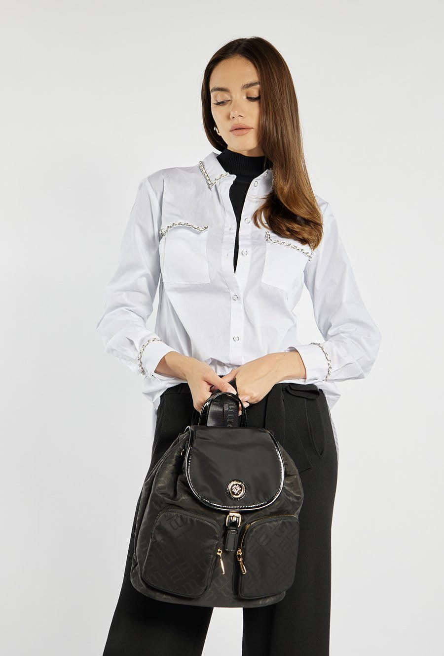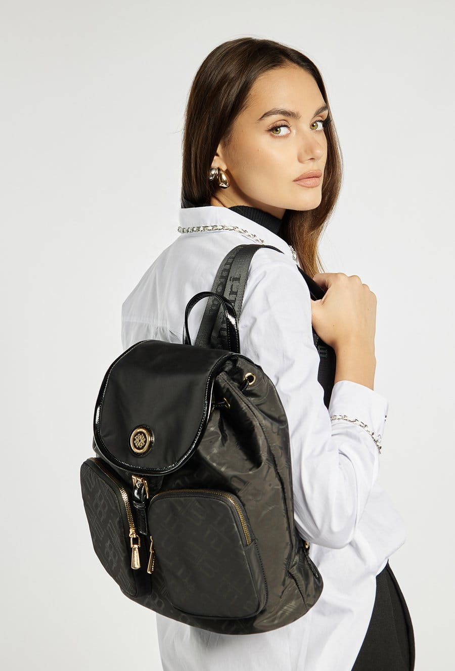 Z przodu plecaka znajdują się dwie pojemne kieszonki zamykane na zamek – idealne na telefon, klucze czy portfel. Całość uzupełniają eleganckie złote okucia oraz stylowe detale. W zestawie znajduje się worek przeciwkurzowy, który zadba o bezpieczeństwo plecaka w przechowywaniu.