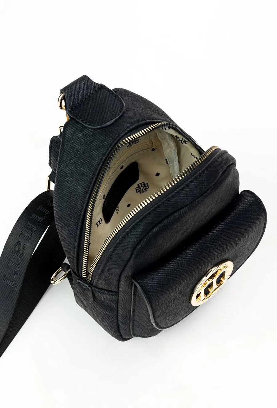 Na klapie kieszonki mieści się biżuteryjna blaszka z logo marki.