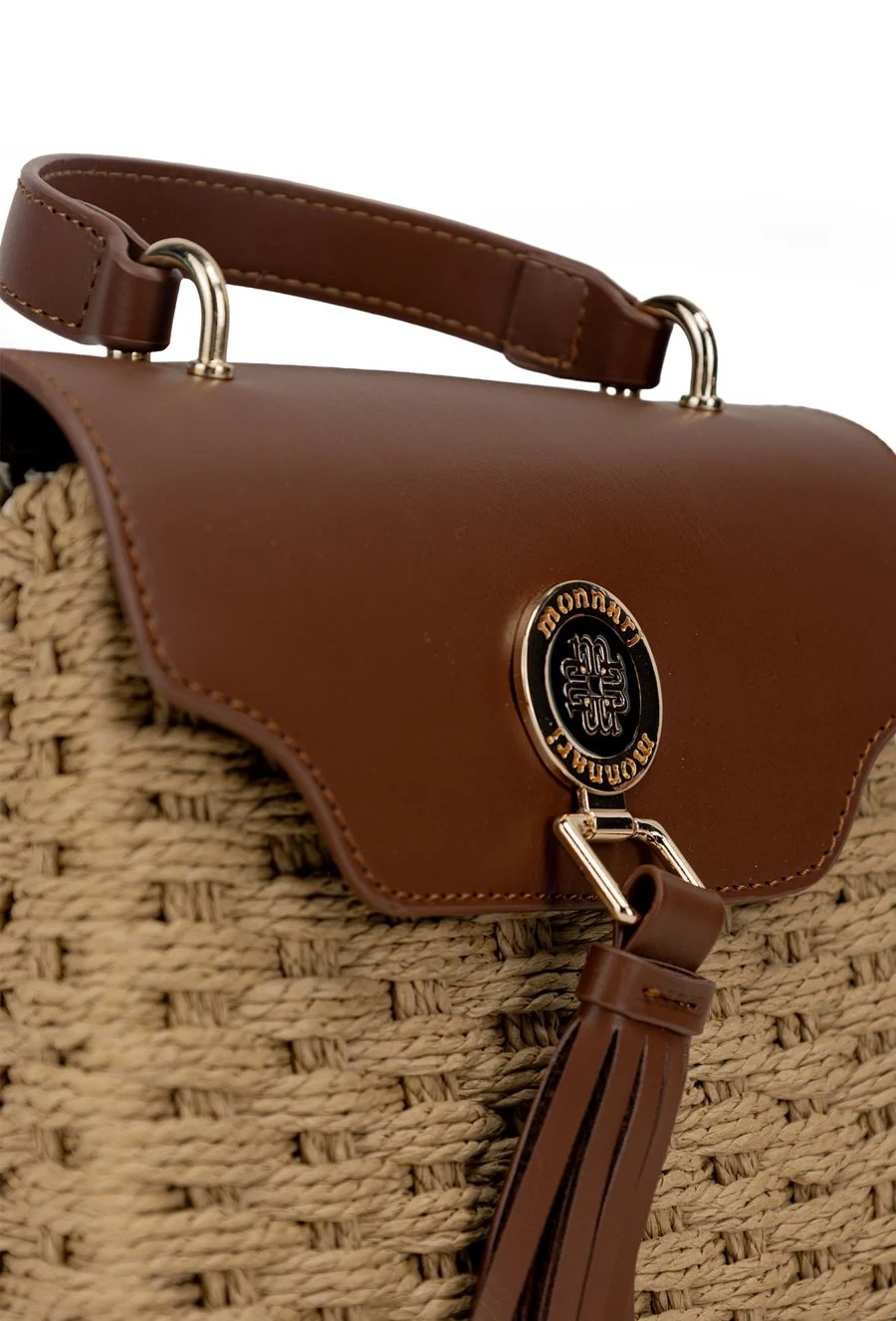 Torebka posiada jednokomorowe wnętrze wykończone jasną, logowaną podszewką oraz praktyczną kieszonkę, która ułatwia organizację. Klapa ozdobiona eleganckim logo marki Monnari oraz dekoracyjnymi frędzlami nadaje całości wyjątkowego charakteru i subtelnej elegancji.