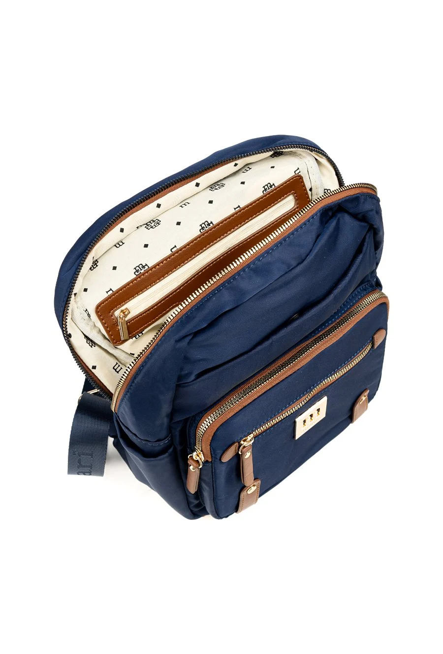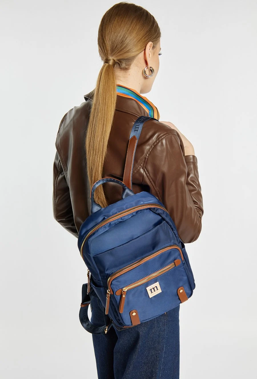 Na froncie plecaka umieszczono praktyczną kieszeń zapinaną na zamek oraz subtelne, złote logo, które podkreśla markowy i nowoczesny styl. Uniwersalny design sprawia, że plecak świetnie komponuje się zarówno z casualowymi, jak i bardziej eleganckimi stylizacjami.