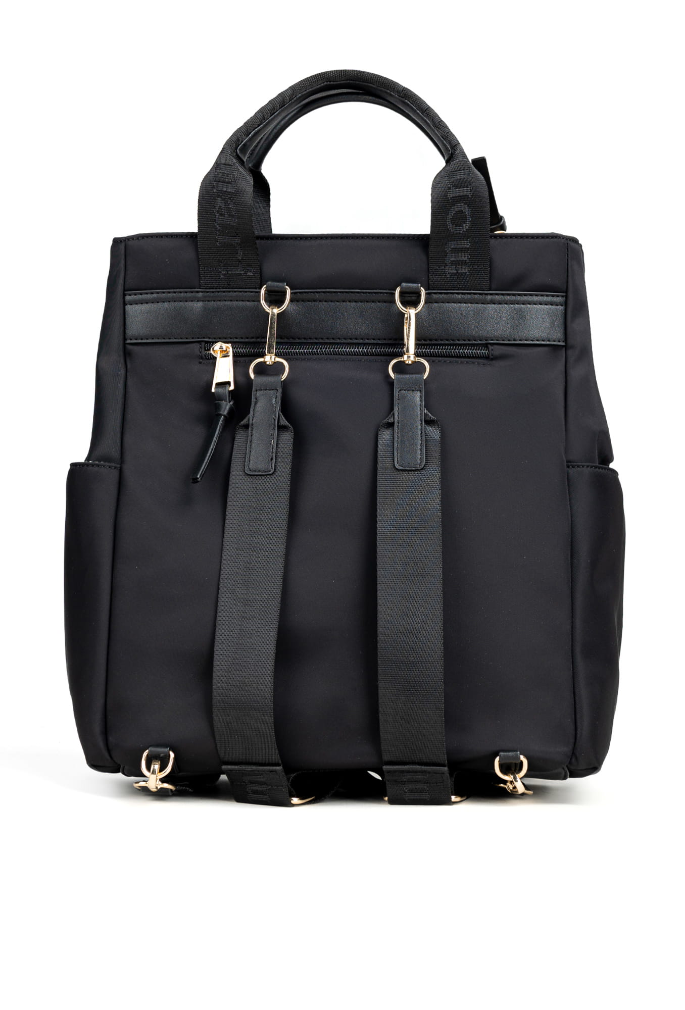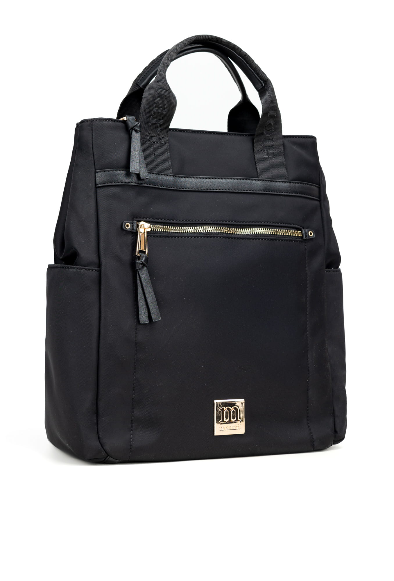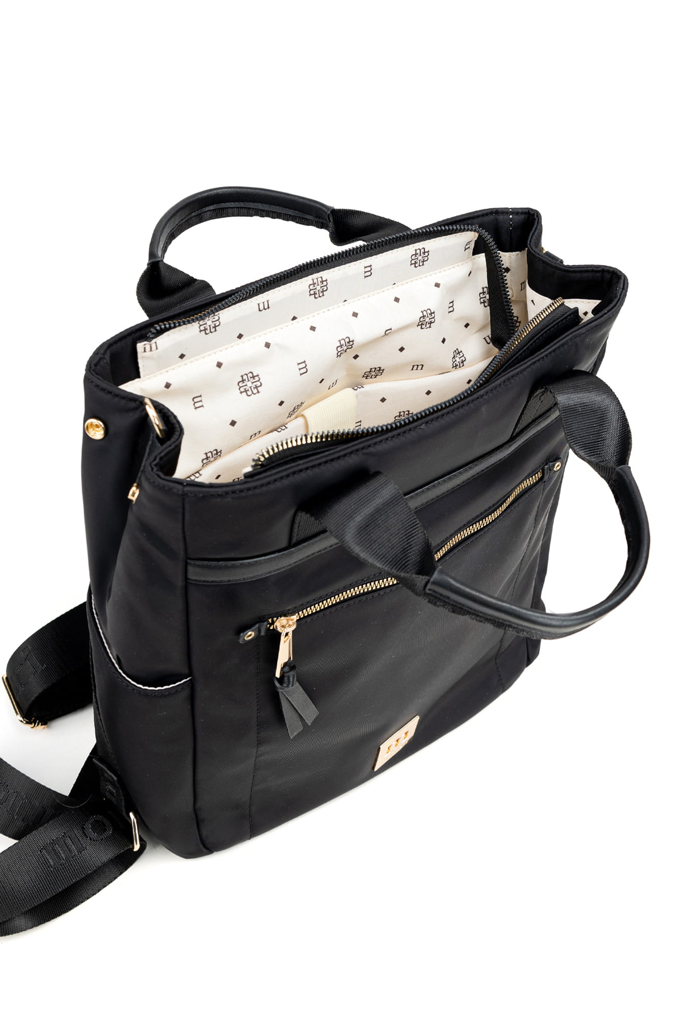 Dzięki przemyślanej konstrukcji możesz nosić go w ręce, na ramieniu lub jako plecak. Pojemne wnętrze z dodatkowymi kieszeniami bez problemu pomieści najpotrzebniejsze rzeczy, a specjalna przegroda np. na tablet zwiększa komfort użytkowania. Klasyczna czerń i złote detale nadają całości ponadczasowego charakteru.