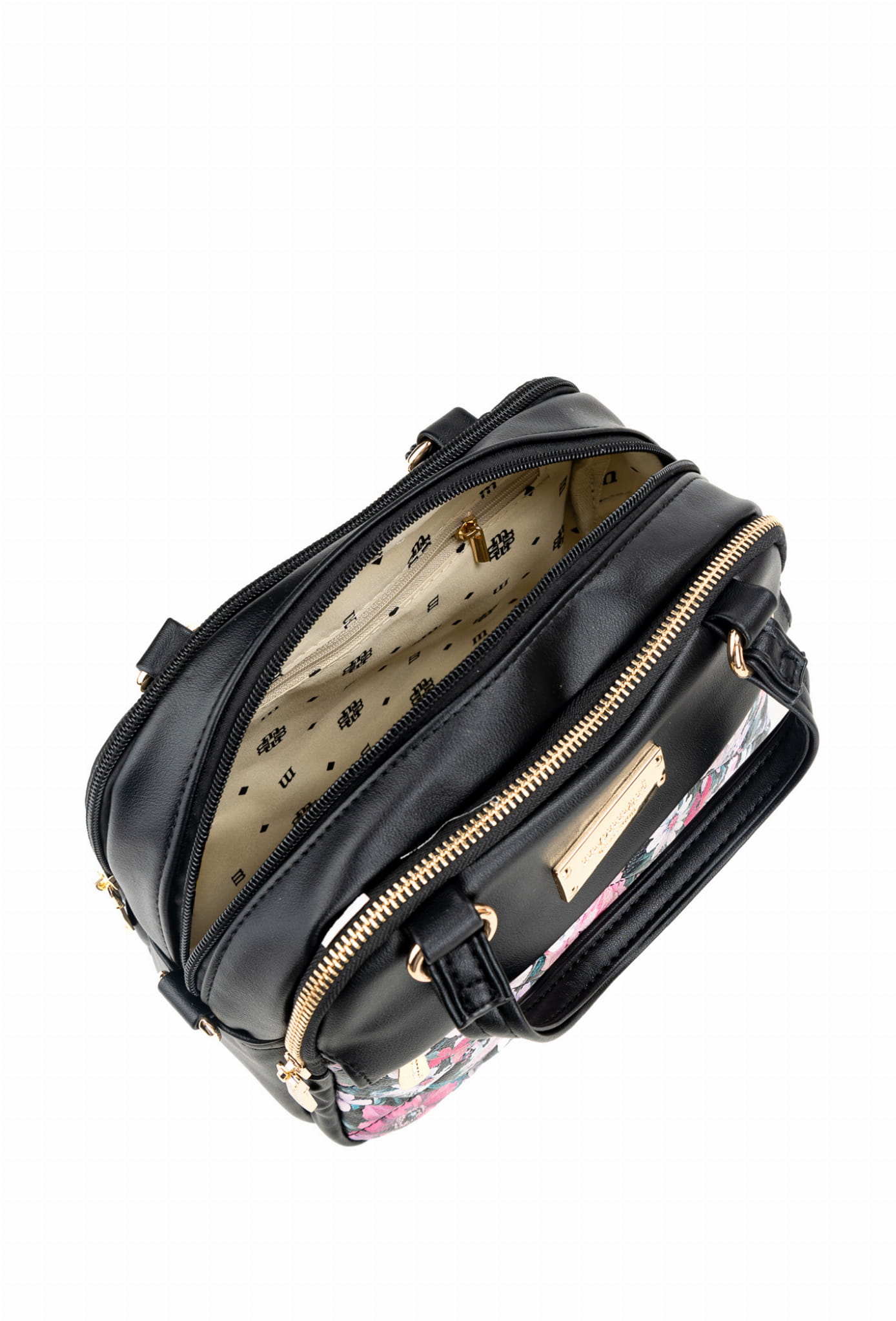Torebka ma trzykomorową konstrukcję, dzięki czemu zapewnia doskonałą organizację zawartości. Dodatkowym atutem jest kieszonka zapinana z przodu pod klapą oraz tylna kieszeń na suwak, idealne na drobiazgi, które chcesz mieć zawsze pod ręką. Wnętrze zostało wyposażone w jedną kieszonkę zapinaną oraz jedną otwartą, co zwiększa komfort użytkowania.