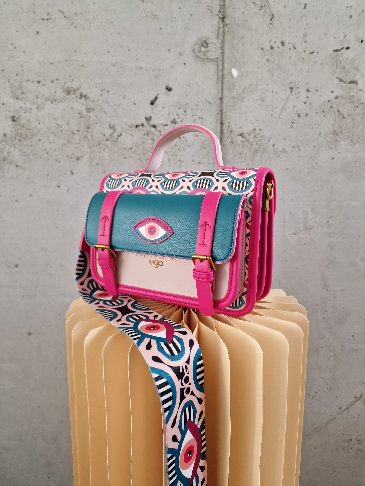 Torebka z najnowszej kolekcji psychodelic marki Ego model ILLUSIA został wykonany z najwyższej jakości skóry ekologicznej.