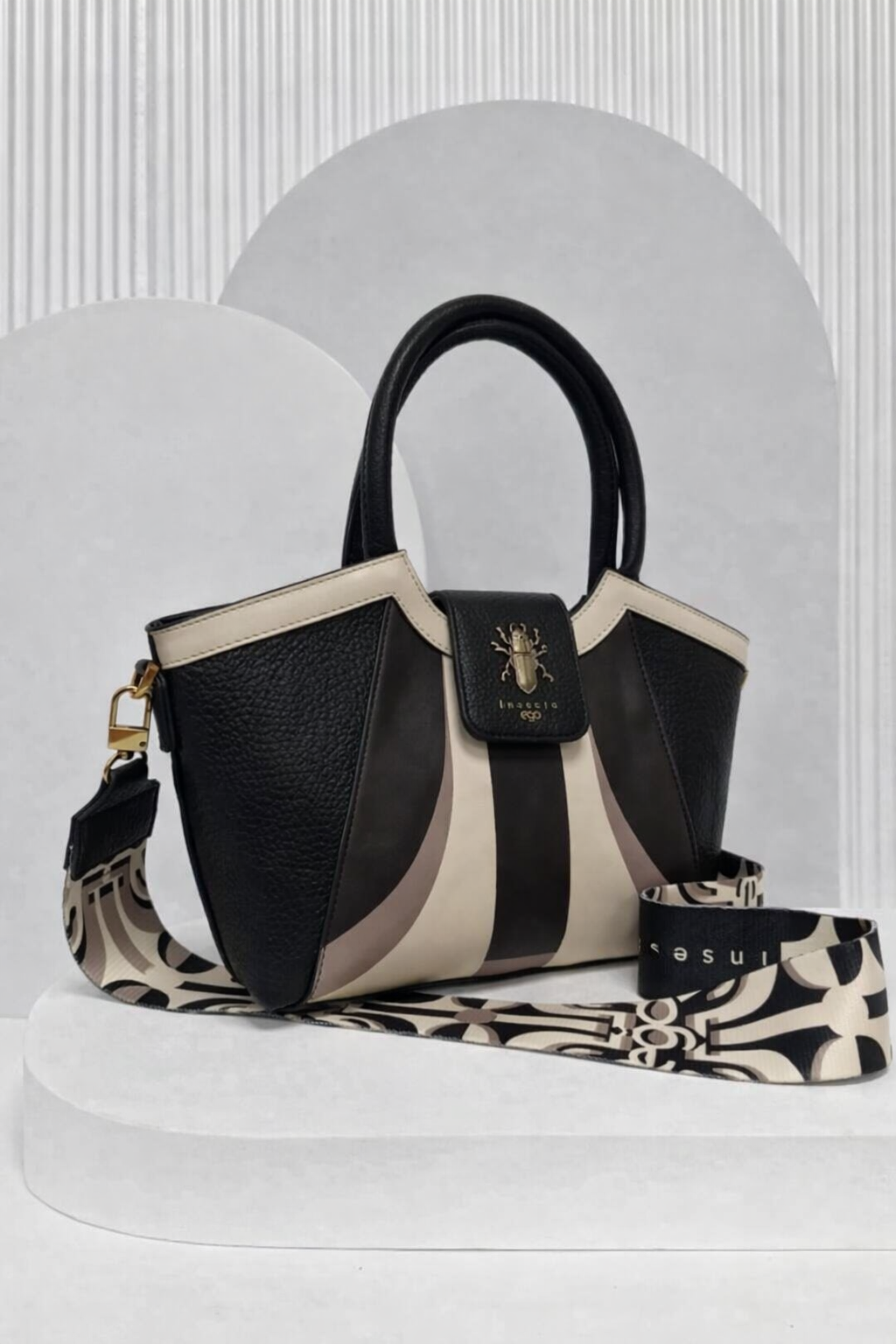 Charakterystycznym elementem modelu DELTICA jest ozdobny skarabeusz umieszczony na froncie – znak rozpoznawczy kolekcji INSECTA, który nadaje torebce wyjątkowego charakteru. Tył torebki jest gładki i wyposażony w praktyczną kieszonkę.