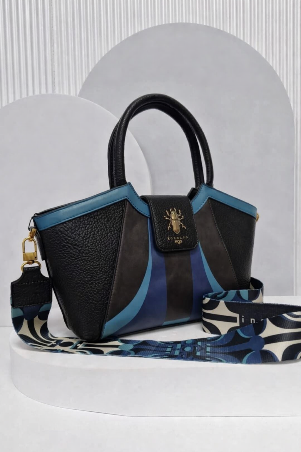 Charakterystycznym elementem modelu DELTICA jest ozdobny skarabeusz umieszczony na froncie – znak rozpoznawczy kolekcji INSECTA, który nadaje torebce wyjątkowego charakteru. Tył torebki jest gładki i wyposażony w praktyczną kieszonkę.