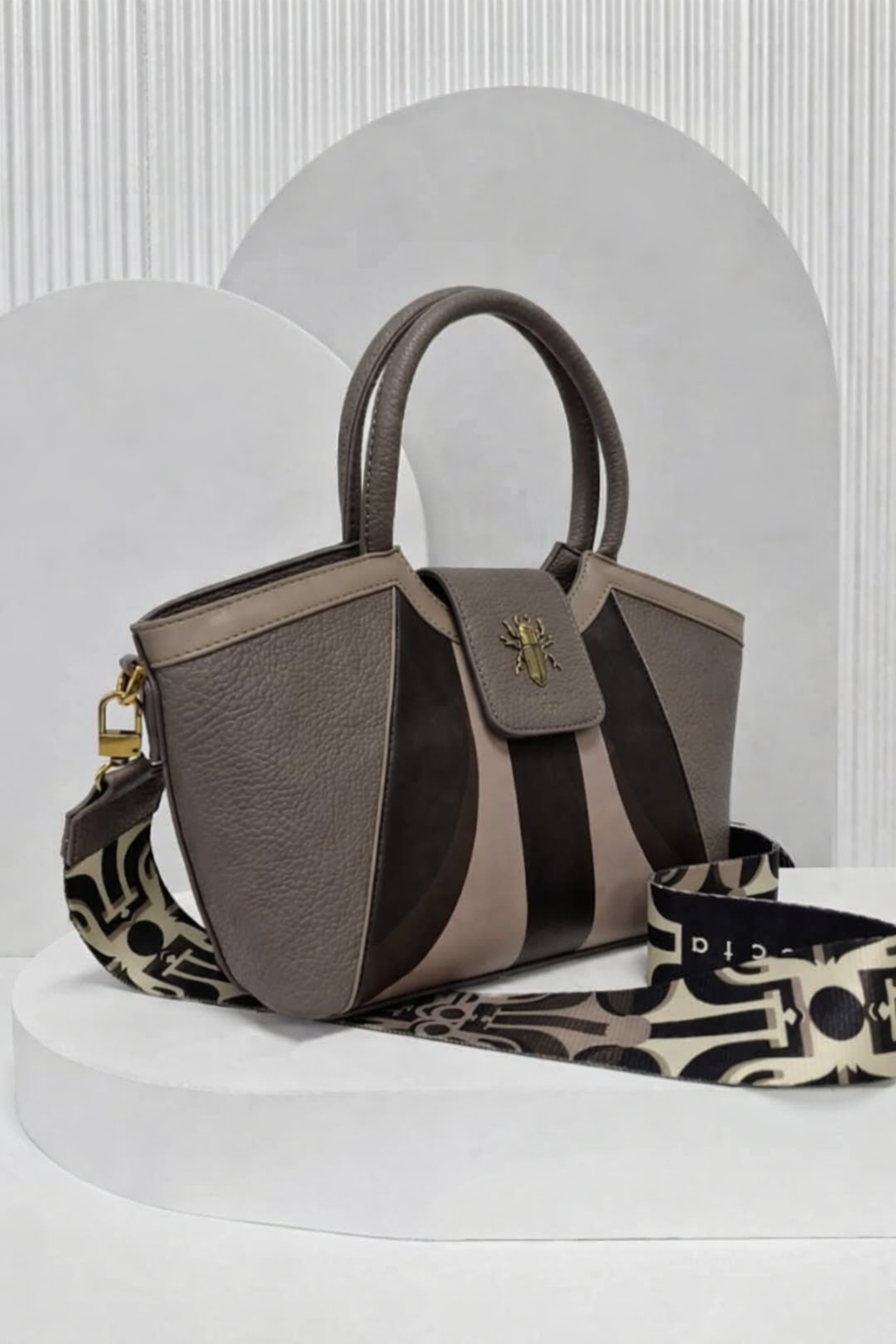 Charakterystycznym elementem modelu DELTICA jest ozdobny skarabeusz umieszczony na froncie – znak rozpoznawczy kolekcji INSECTA, który nadaje torebce wyjątkowego charakteru. Tył torebki jest gładki i wyposażony w praktyczną kieszonkę.