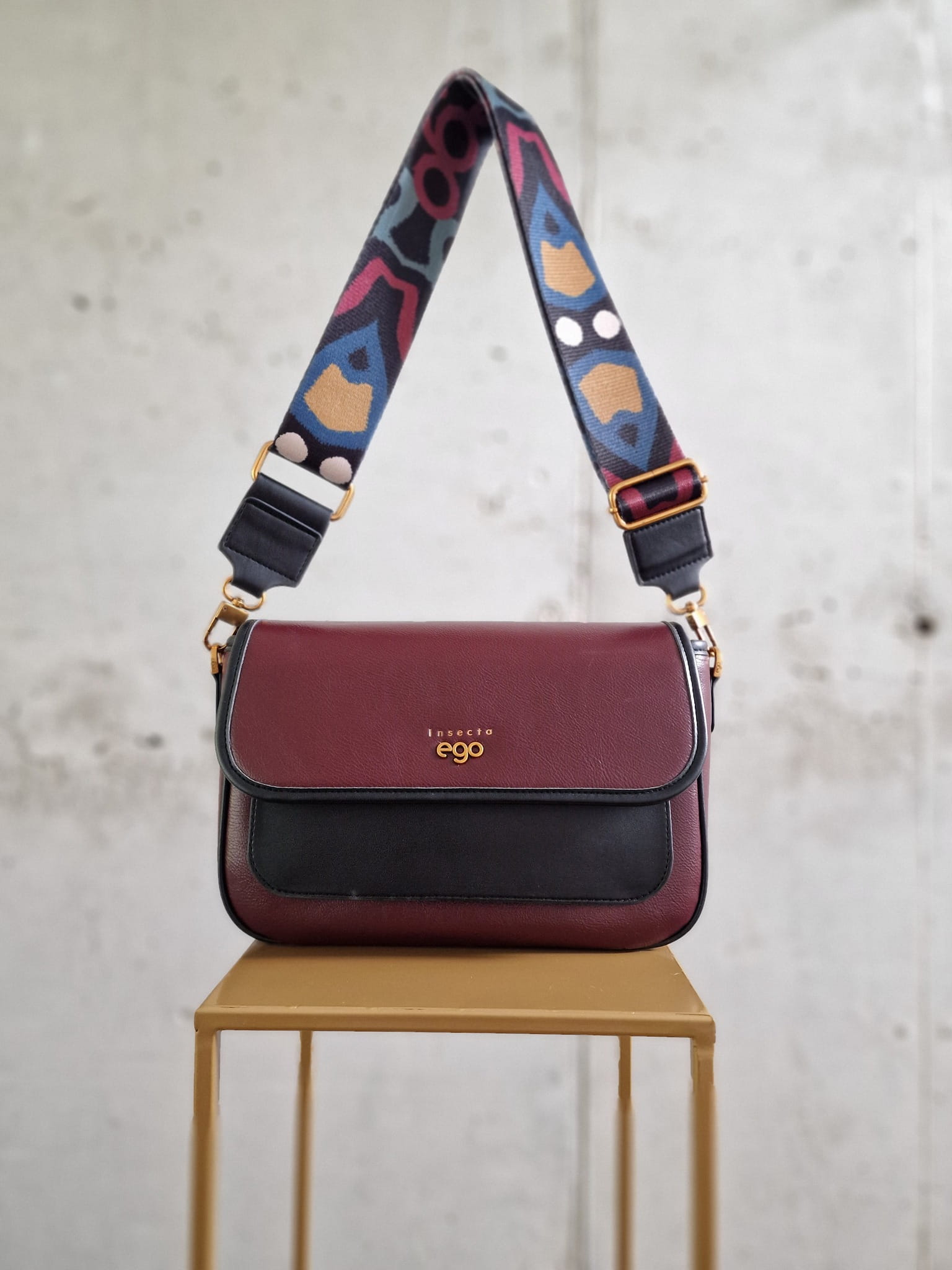 Torebka Ego INSECTA z klapką burgund z czarnym