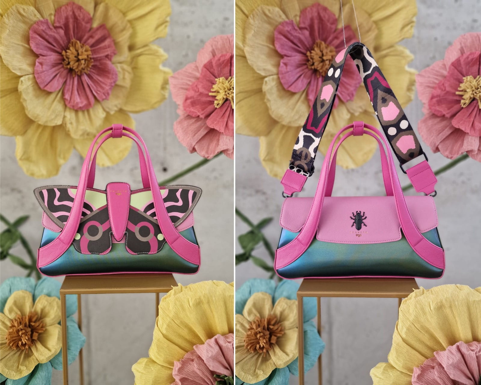 Torebka Ego SYNERGIA z odpinanym motylem holo zieleń / róż