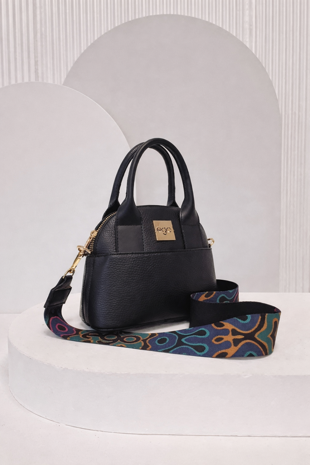 Torebka jest usztywniona, dzięki czemu zachowuje swój kształt, a nóżki ochronne na spodzie skutecznie zabezpieczają ją przed zabrudzeniem i zniszczeniem. W zestawie znajdują się dwa paski, które pozwalają dopasować torebkę do stylizacji i okazji: