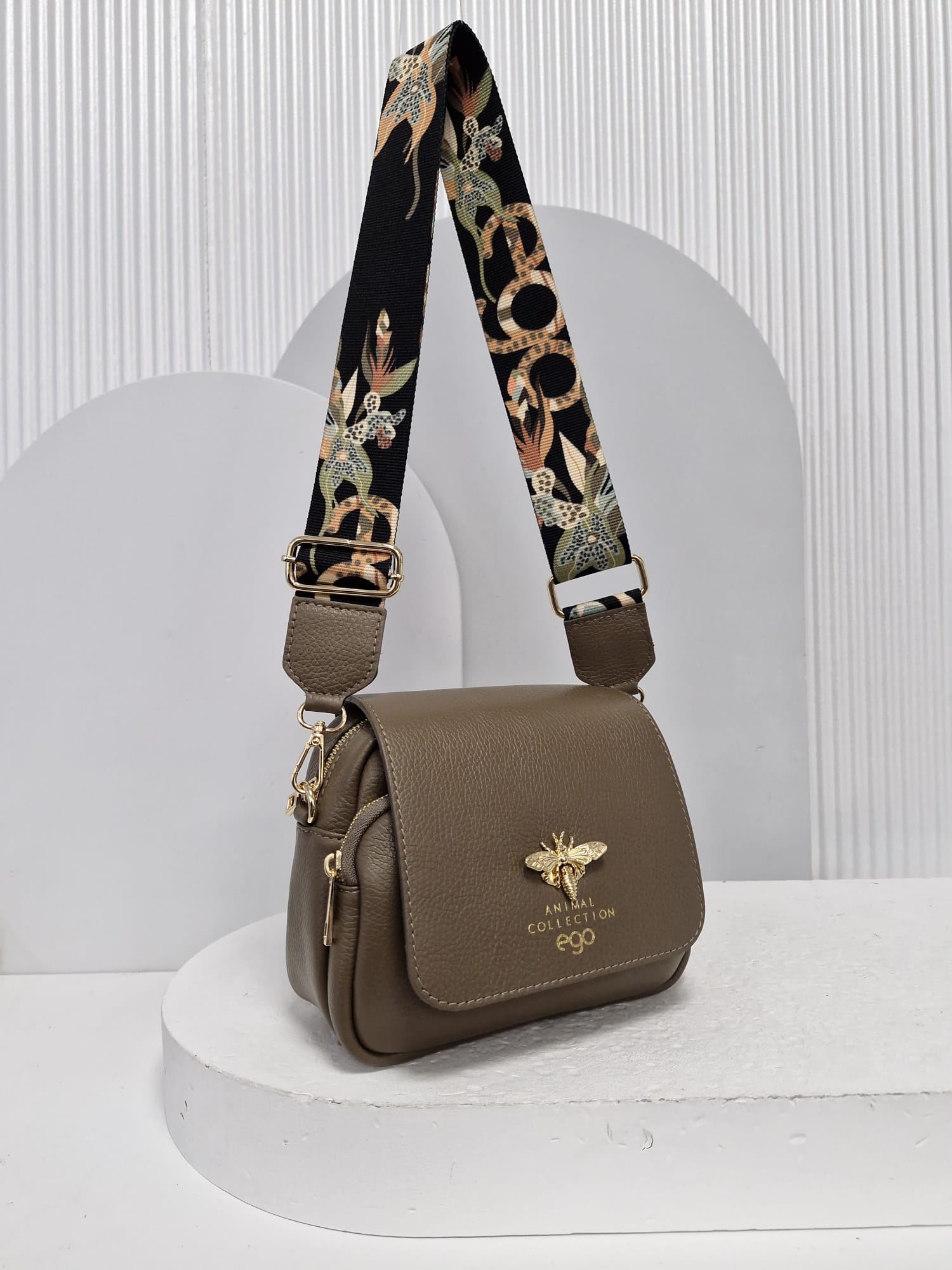 Na klapie znajduje się ozdobne zapięcie - pszczółka oraz napis ANIMAL COLLECTION EGO w kolorze złotym.