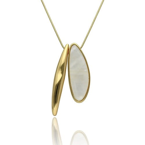 Zawieszka o nowoczesnej, opływowej formie pięknie odbija światło, podkreślając unikalne refleksy muszli. Naszyjnik idealnie sprawdzi się zarówno na co dzień, jak i do eleganckich kreacji.